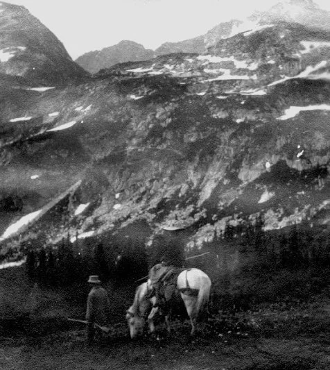 He tells the story of a Miss Wheeler, who in 1932 hiked from the vicinity of Lake Wenatchee to the Canadian border and back, accompanied only by her pack horse.