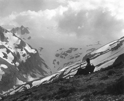 The goals of Chapters 2 through 13 are to describe the character of this land and the changes it has undergone, through the journeys of more than a dozen individuals. There are differences of time, ranging from the 19th century to the late 1990s. Not surprisingly, each individual has their unique perspective on the wilderness of the rugged high country east of the Cascade divide. Some individuals, such as A.H. Sylvester, who first appears in Chapter 2, will be familiar to readers of Northwest history. Sylvester was the most influential supervisor of the early years of the Wenatchee National Forest, traveling through much of the forest before the trail system was fully developed. His many trips have given us a long list of place names, one of his most enduring contributions. Sylvester died from an accident near Mary’s Pass in the Chiwaukum Mountains, just before the end of the Second World War. Israel C. Russell was a pioneer geologist in the Cascades at the end of the 19th century. His 1897 journey in the Stuart Range is recounted in Chapter 3. Daniel C. Linsley, the most prominent character of Chapter 6, was an engineer and surveyor engaged in a search for a route through the Cascades for the Northern Pacific Railroad. His journal has only recently become well known to regional historians. C.E. Rusk was a well known mountaineer and writer of the early 20th century. His book, Tales of a Western Mountaineer, is a classic of early day Northwest climbing and adventuring. Excerpts from his writing are used throughout Chapter 7, recounting a 1906 trek from Lake Chelan to Glacier Peak, and back. His companion, A.L. Cool, although less well known, was a fascinating individual who spent decades living in the Chelan and Entiat high country. The other individuals from whom I have drawn are known more locally or among specialized circles, but their perceptions and experiences are in no way less sensitive or less compelling. John Charlton and Gene Prater, prominent in Chapter 3, provide some of the most personal and perceptive observations. Also included in Chapter 3, Bill and Peg Stark’s lifelong involvement with the Enchantment Lakes re-affirms the special character of that high, lake filled basin in the Stuart Range. A young woman’s multi-week, solo horse packing trip in the 1930s is recalled in Chapter 8. Her journey is filled with challenges and occasional hardship. Chapter 10 includes the observations of a remarkable mountaineer, Burr Singleton Sr., engaged in reaching the summits of his favorite peaks in the 1960s, even as he approached his mid-80s. Dale Allen’s love of ski touring through the snow covered Cascade high country is expressed with simplicity and without pretense through his journals and interviews in Chapter 12.